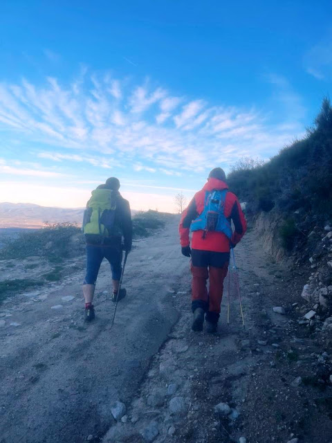 Aprovechamos para despedirnos de 2023 y dar la bienvenida a 2024. Comemos un poco después de brindar y comenzamos a descender. Lo hacemos siguiendo la pista aunque hay un tramo que podemos hacer un corte en una gran curva. Por la pista desembocamos en una carretera que va del Torno a Cabezabellosa.